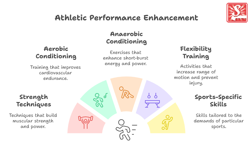 Strength techniques align with other conditioning components such as aerobic and anaerobic conditioning, flexibility training, and sports-specific skills. They provide a robust foundation that enhances overall athletic performance. Integrated periodization models ensure athletes develop strength while preventing overtraining and promoting holistic athletic development.